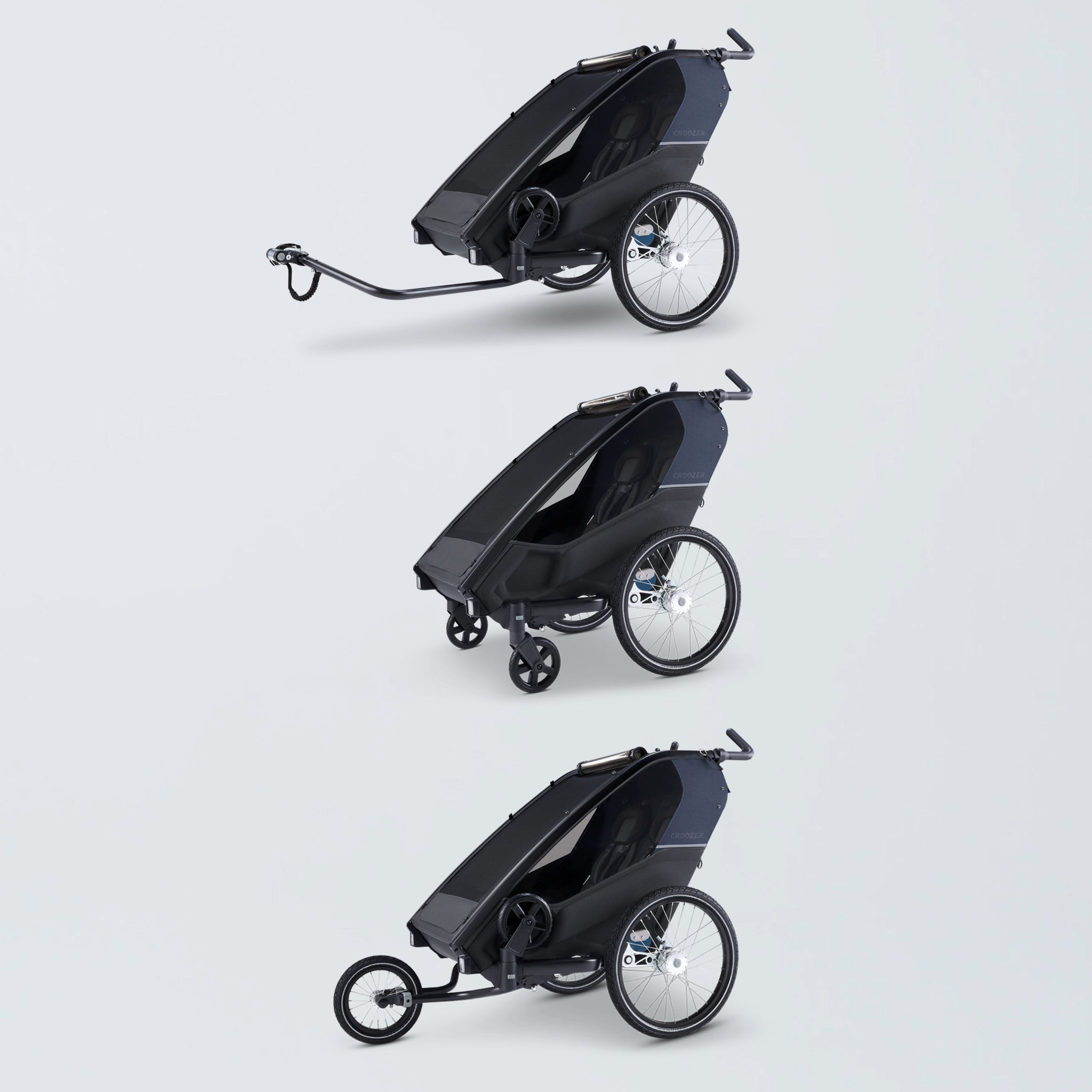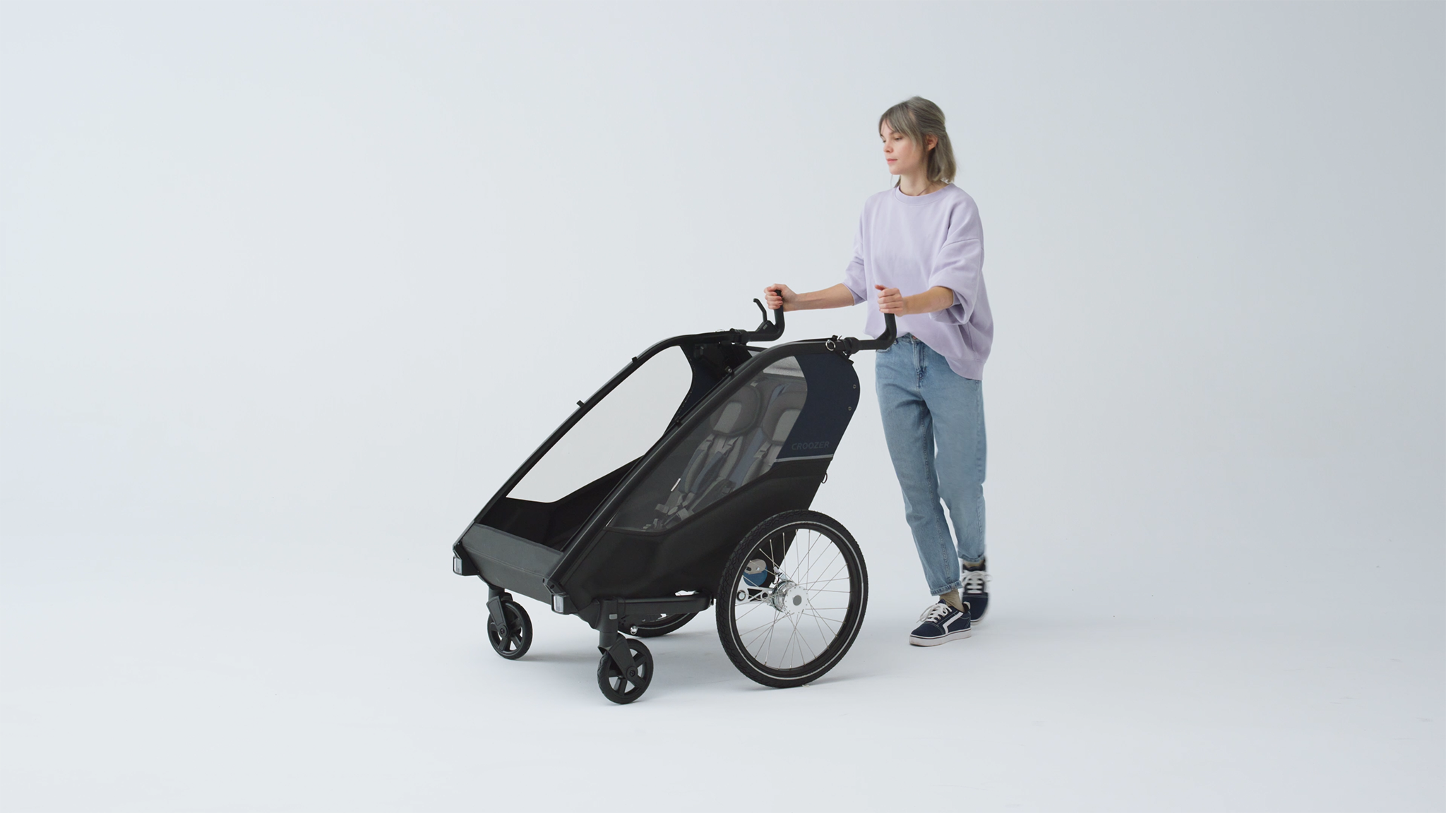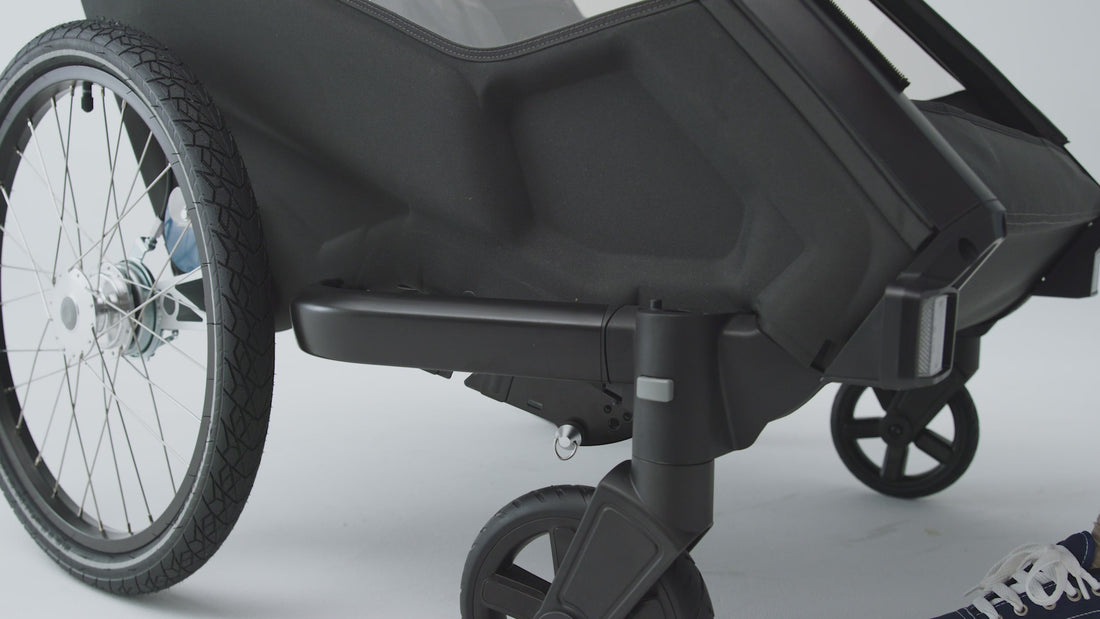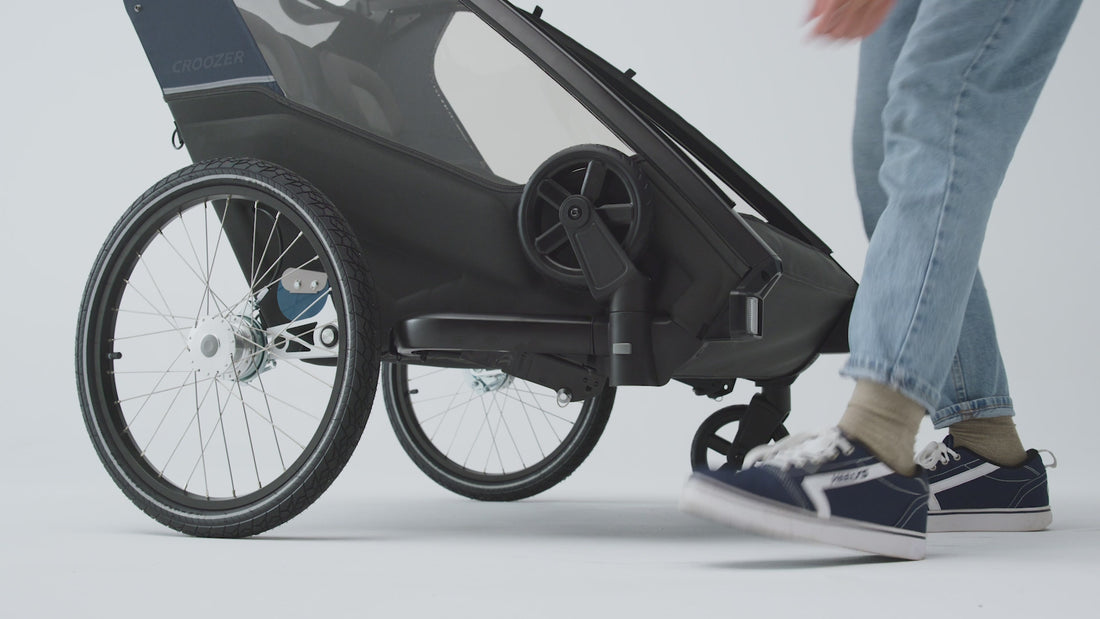 Croozer Lykke ist ein faltbarer Kinderwagen mit Fahrradanhänger-Funktion.