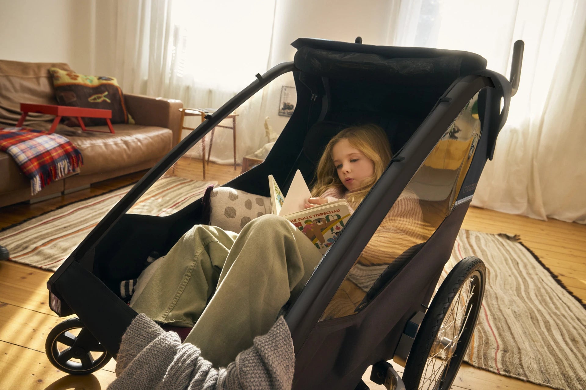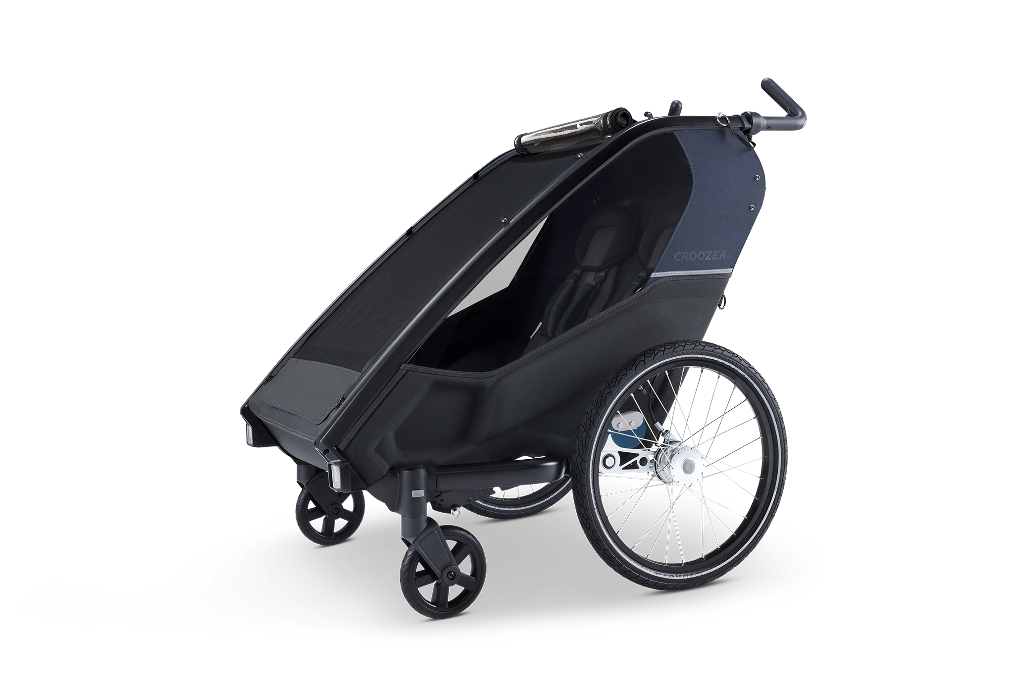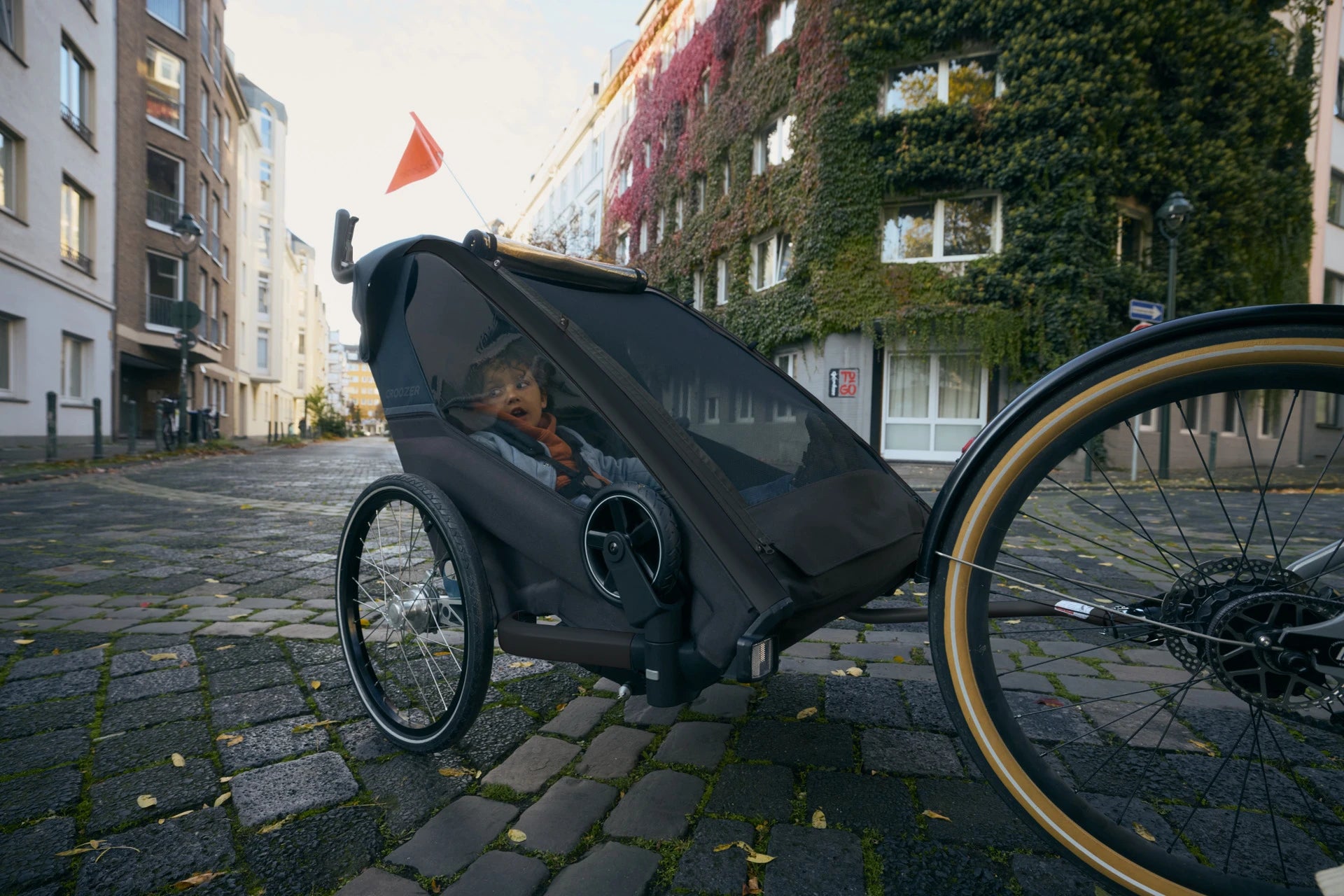 Croozer Lykke ist ein faltbarer Kinderwagen mit Fahrradanhänger-Funktion.